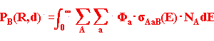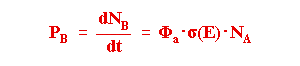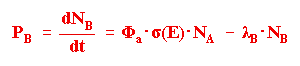 Ein einfacher Dünntargetansatz beschreibt die Produktion P von B durch eine Kernreaktion. Die Zunahme der Teilchenzahl NB mit der Zeit ist proportional dem Fluss der einfallenden Teilchen a und der vorliegenden Targetatome NA. Die Wahrscheinlichkeit für das Ablaufen der Kernreaktion A(a,b)B wird durch die energieabhängige Größe wiedergegeben.